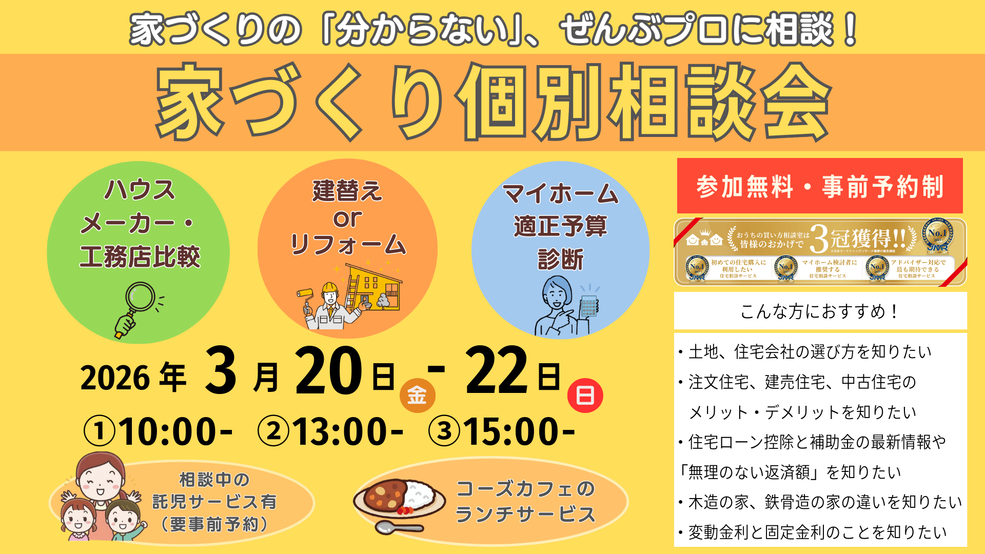 おうちに関するご相談は全て無料です。